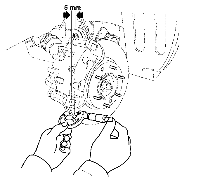 FRONT BRAKE DISC THICKNESS CHECK1. Remove all rust and contamination from the surface, and measure the disc thickness at 8 points, at least, of same distance (5mm) front the brake disc outer circle.