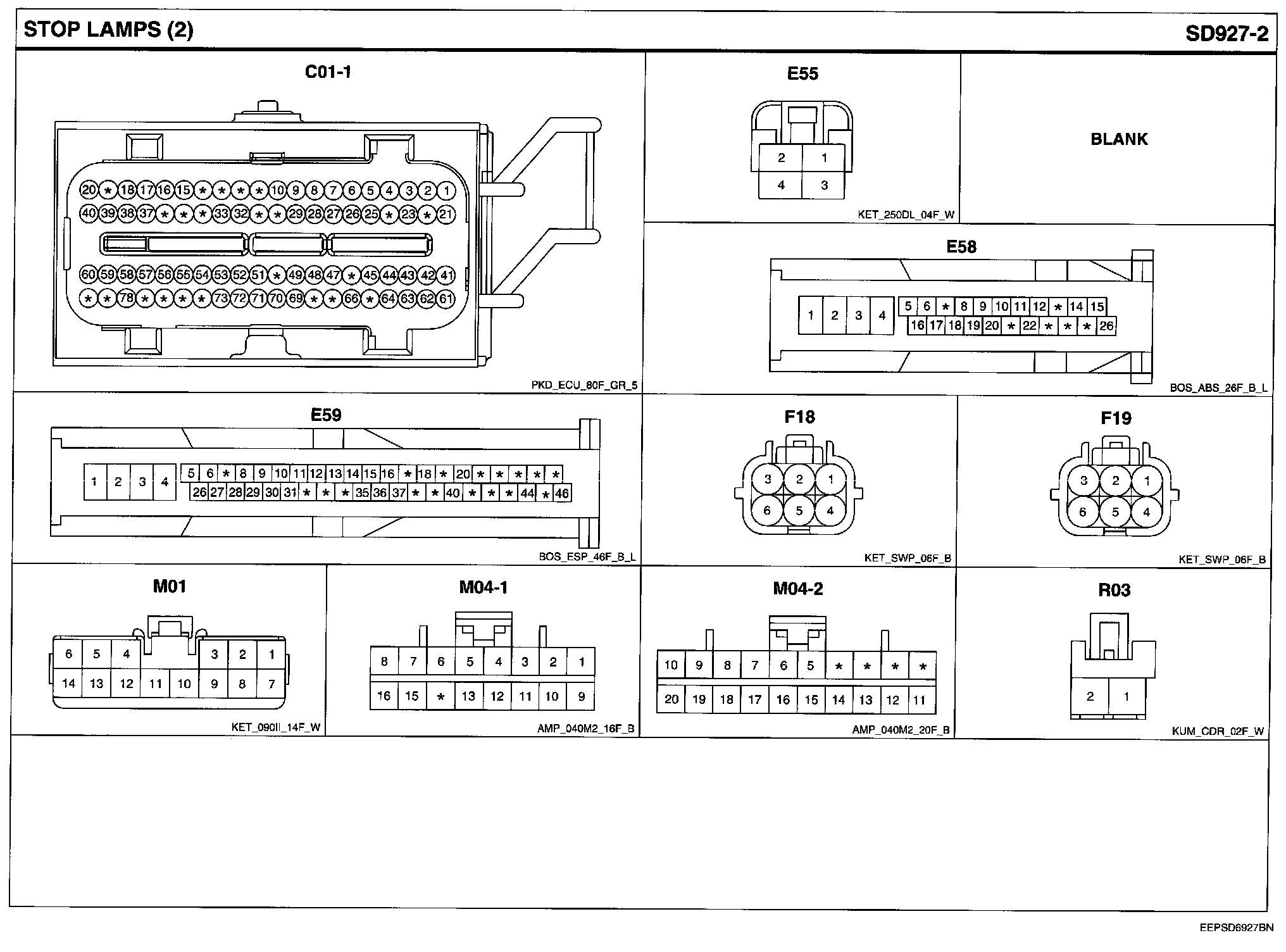 Stop Lamps Connector Pin Outs: