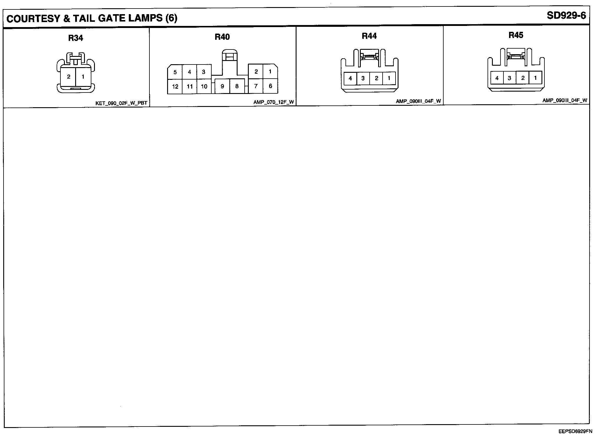 Courtesy & Tail Gate Lamps Connector Pin Outs: