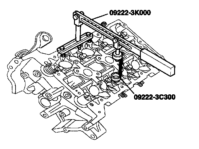 3) Using the SST(09222 - 3K000, 09222-3C300), compress the spring and install the retainer locks. After installing the valves, ensure that the retainer locks are correctly in place before releasing the valve spring compressor.