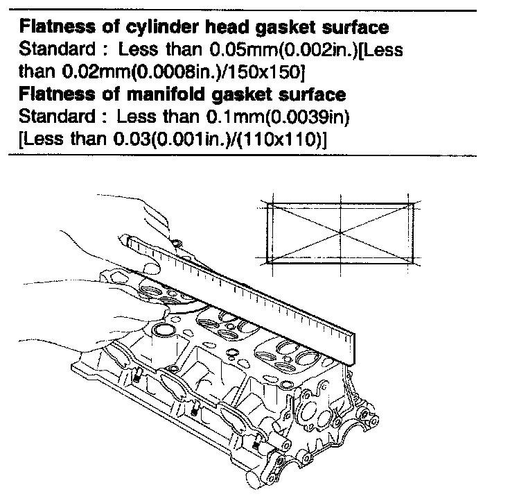 Using a precision straight edge and feeler gauge, measure the surface the contacting the cylinder block and the manifolds for warpage.