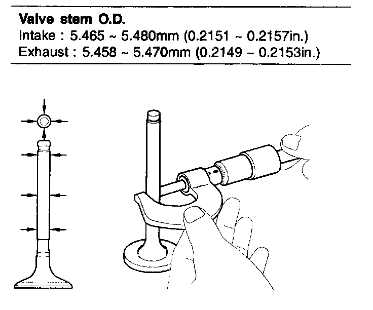 3) Subtract the valve stem diameter measurement from the valve guide inside diameter measurement.