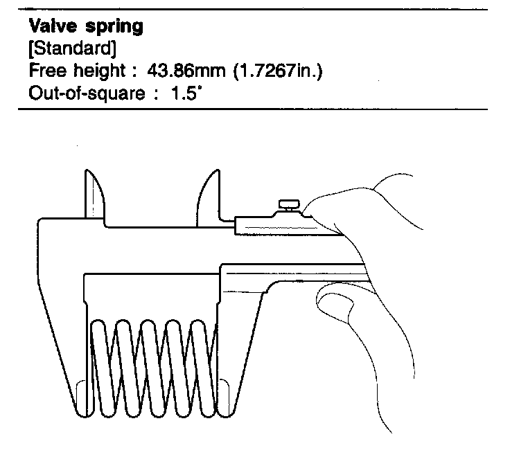 2) Using a vernier calipers, measure the free length of the valve spring.