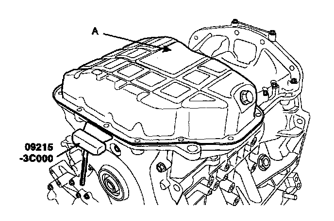 2. Using SST(09215-3C000) remove lower oil pan(A).