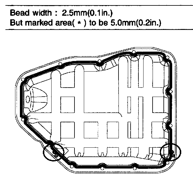 b. Before assembling the oil pan, the liquid sealant TB1217H should be applied on upper oil pan. The part must be assembled within 5 minutes after the sealant was applied.
