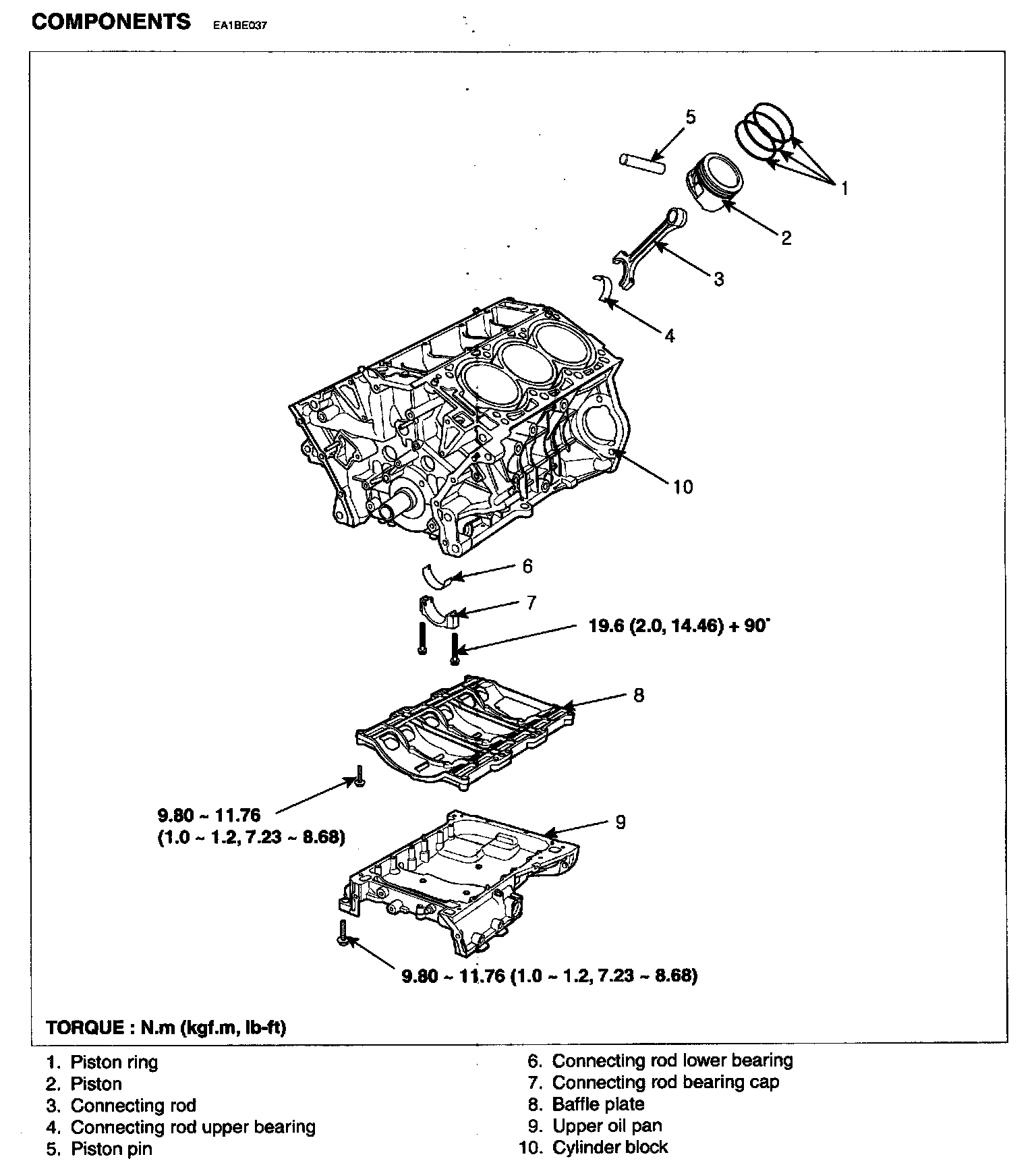 2) Push the piston, connecting rod assembly and upper bearing through the top of the cylinder block.