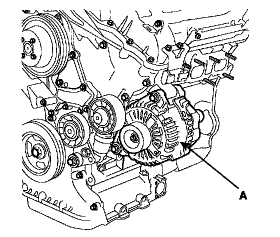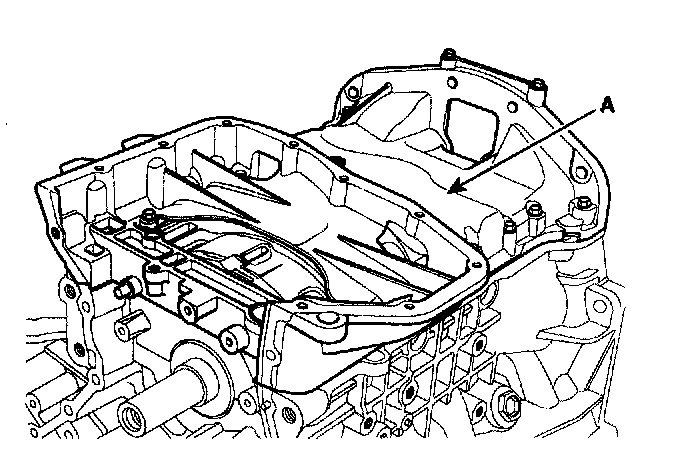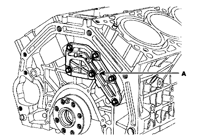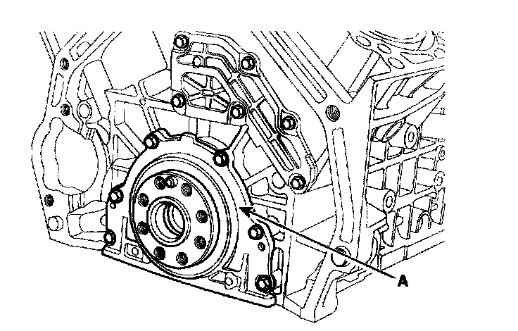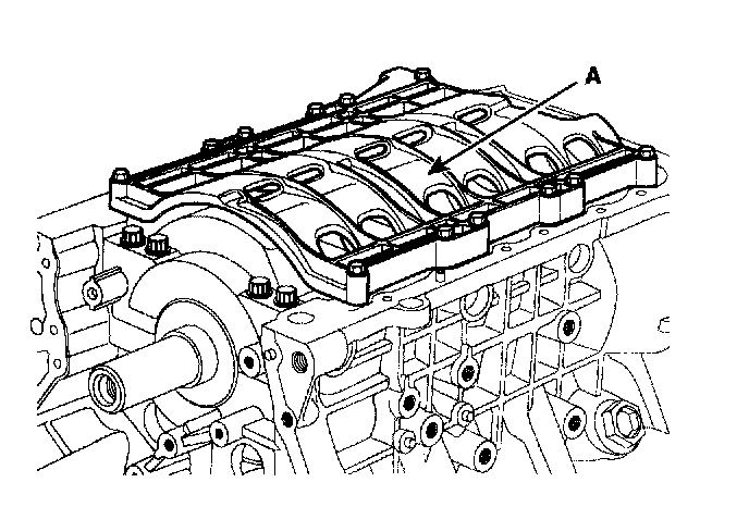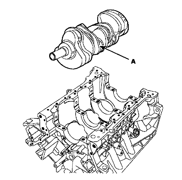 12. Lift the crankshaft(A) out of engine, being careful not to damage journals.