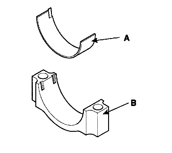 2) Install the bearings(A) in the connecting rod and connecting rod cap(B).