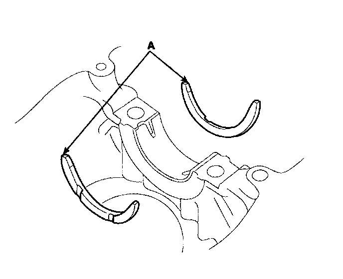 2) Align the bearing claw with the claw groove of the main bearing cap, and push in the 4 lower bearings(A).