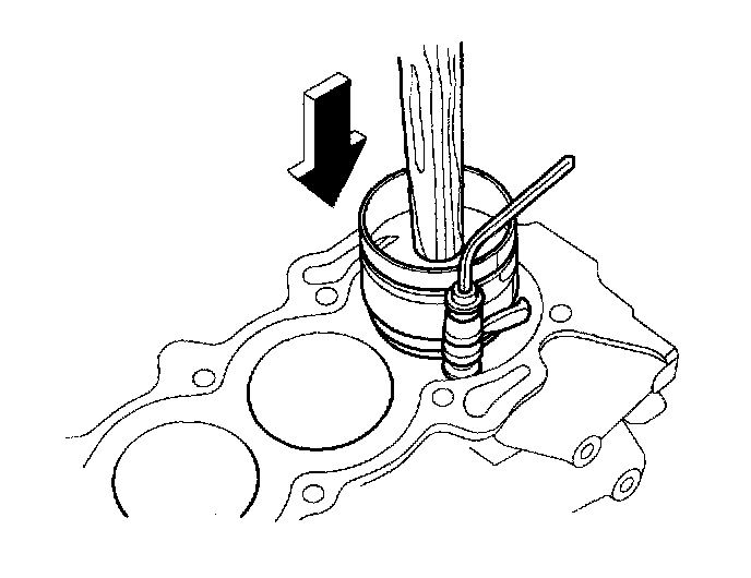 ^ Maintain downward force on the ring compressor to prevent the rings from expanding before entering the cylinder bore.