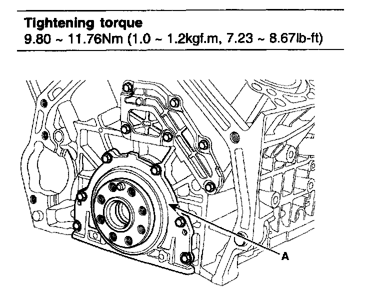 Tightening torque 71.54 - 75.46Nm (7.3 - 7.7kgf.m, 52.80 - 55.69lb-ft)