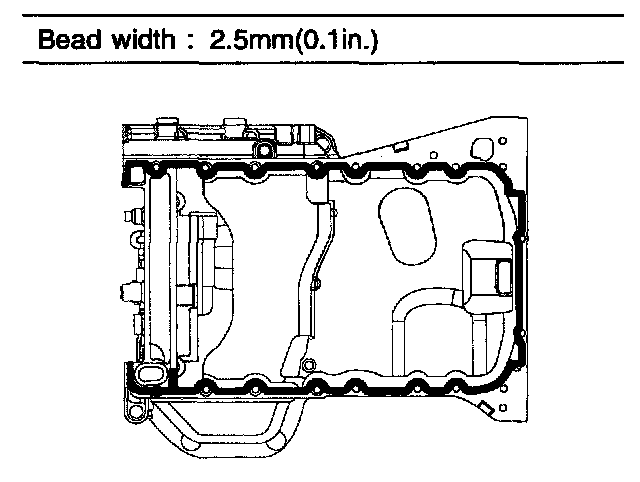 b. Before assembling the oil pan, the liquid sealant TB1217H should be applied on upper oil pan. The part must be assembled within 5 minutes after the sealant was applied.