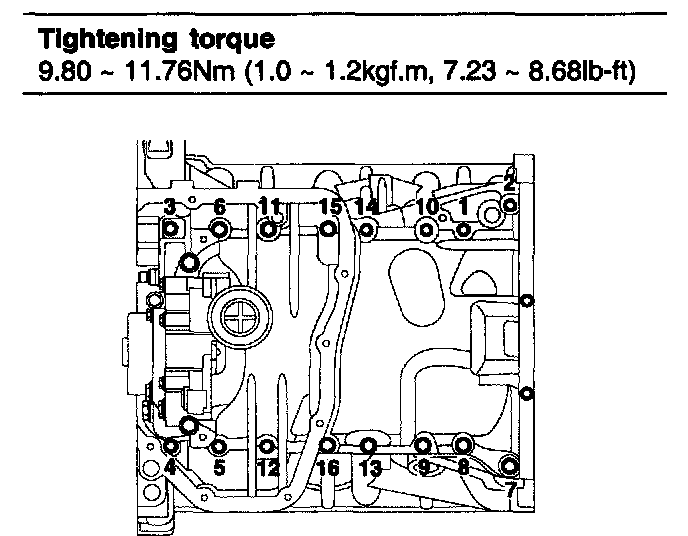19.60 Nm(2.0 kgf.m, 14.46lb-ft)+ 120° (9 - 16)