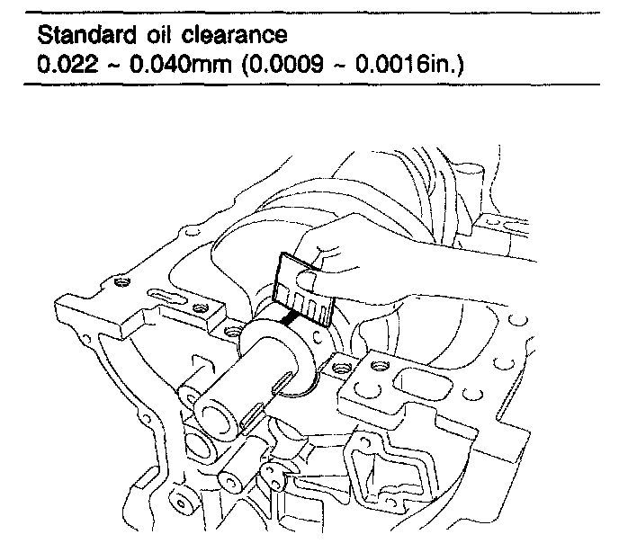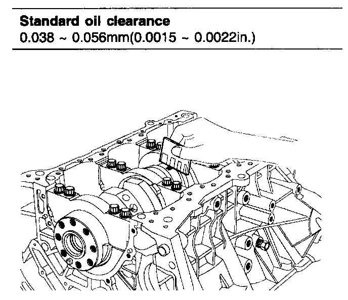 NOTE: If the proper clearance cannot be obtained by using the appropriate larger or smaller bearings, replace the crankshaft and start over.
