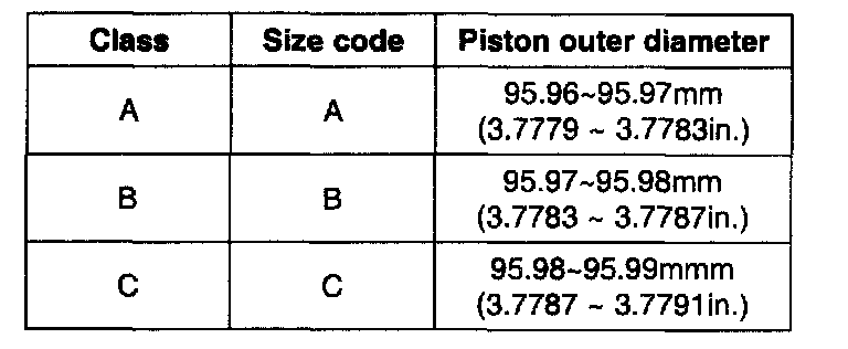 Piston-to-cylinder clearance 0.03 - 0.05mm(0.0012 - 0.0020in.)