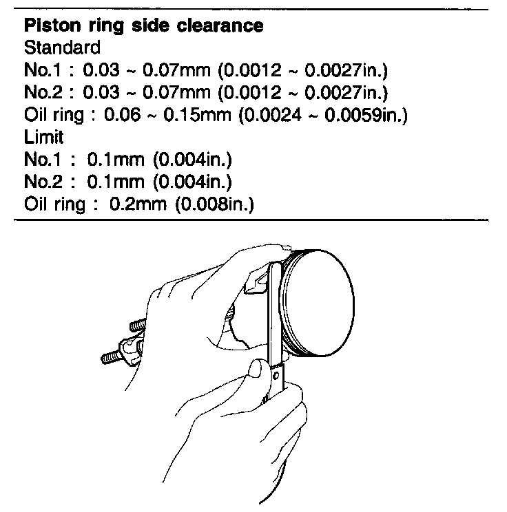 Using a feeler gauge, measure the clearance between new piston ring and the wall of the ring groove.