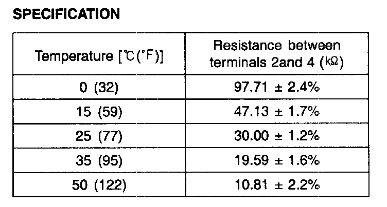 NOTE: In car sensor is negative type thermistor that resistance will rise with lower temperature, and reduce with higher temperature.