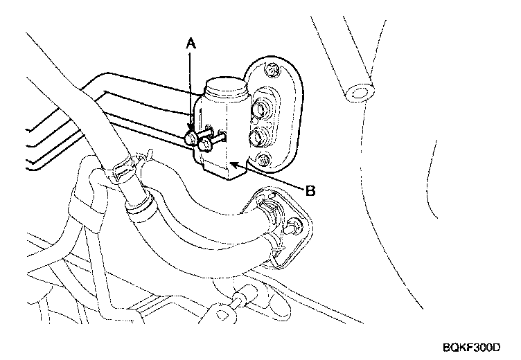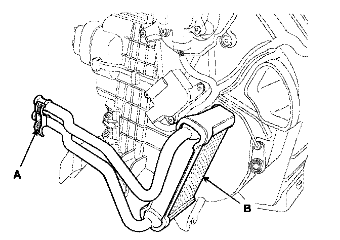 4. Remove the bolts (A) and the expansion valve (B) from the evaporator core.