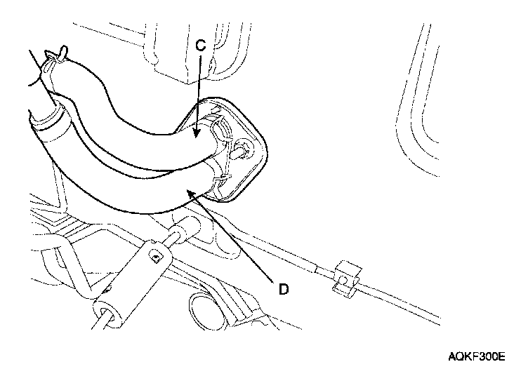 5. Disconnect the inlet (C) and outlet (D) heater hoses from the heater unit.
