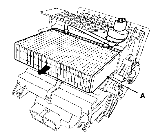 13. Remove the evaporator core (A).