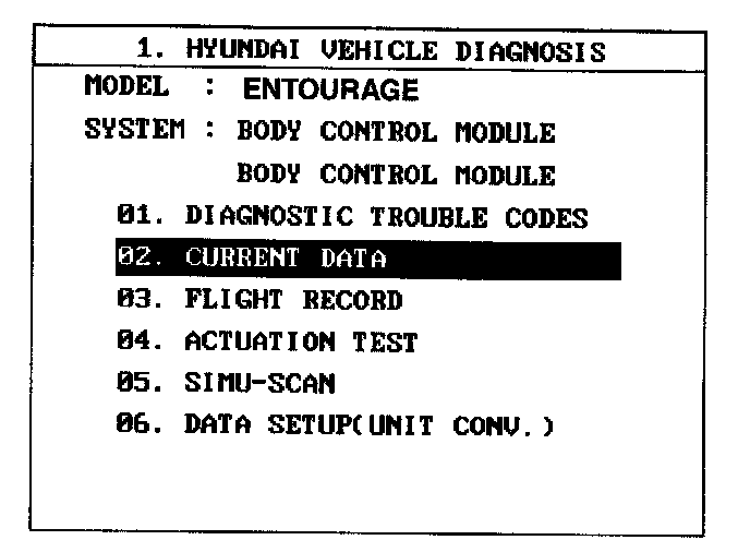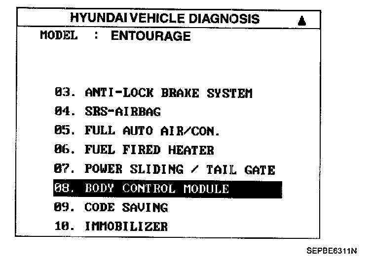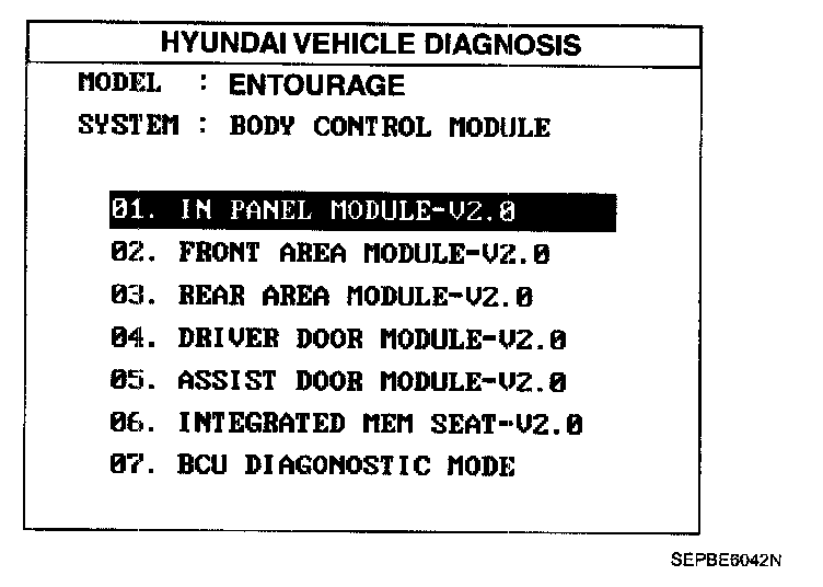 3. If diagnosis is required on the multi function switch, select "ENTOURAGE" and "BCM".