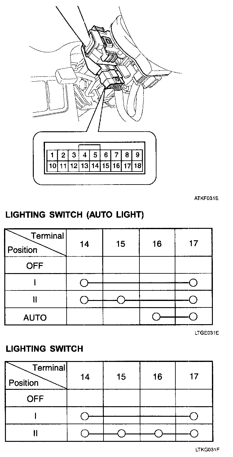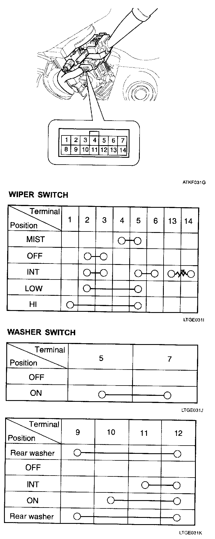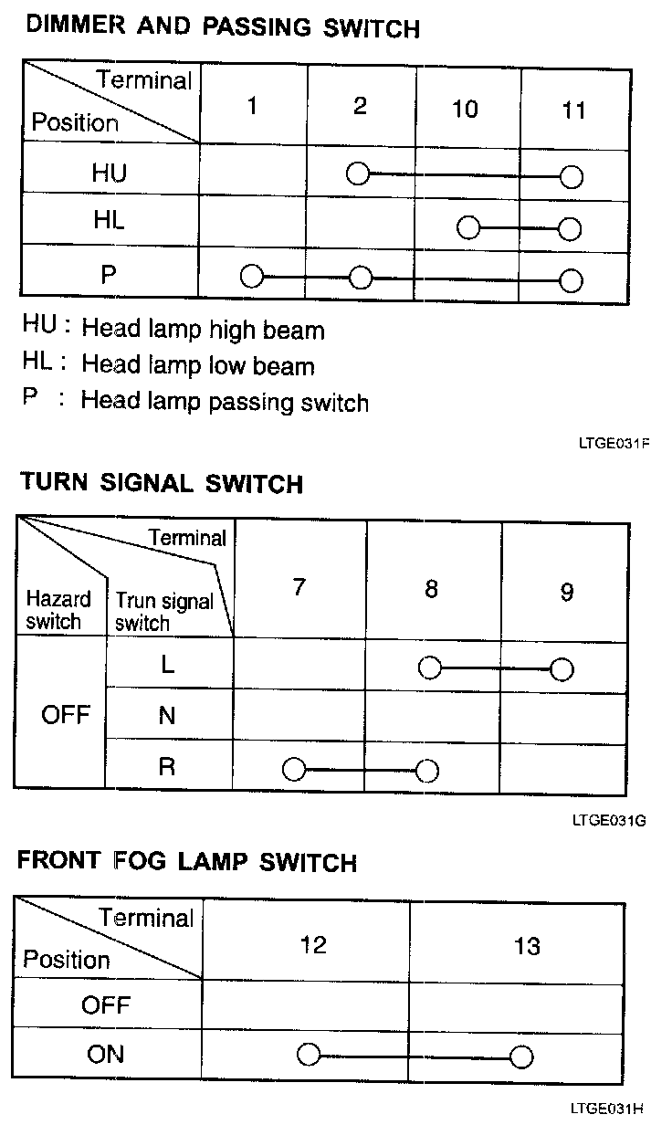 With the multi function switch in each position, make sure that continuity exists between the terminals. If continuity is not as specified, replace the multi-function switch.