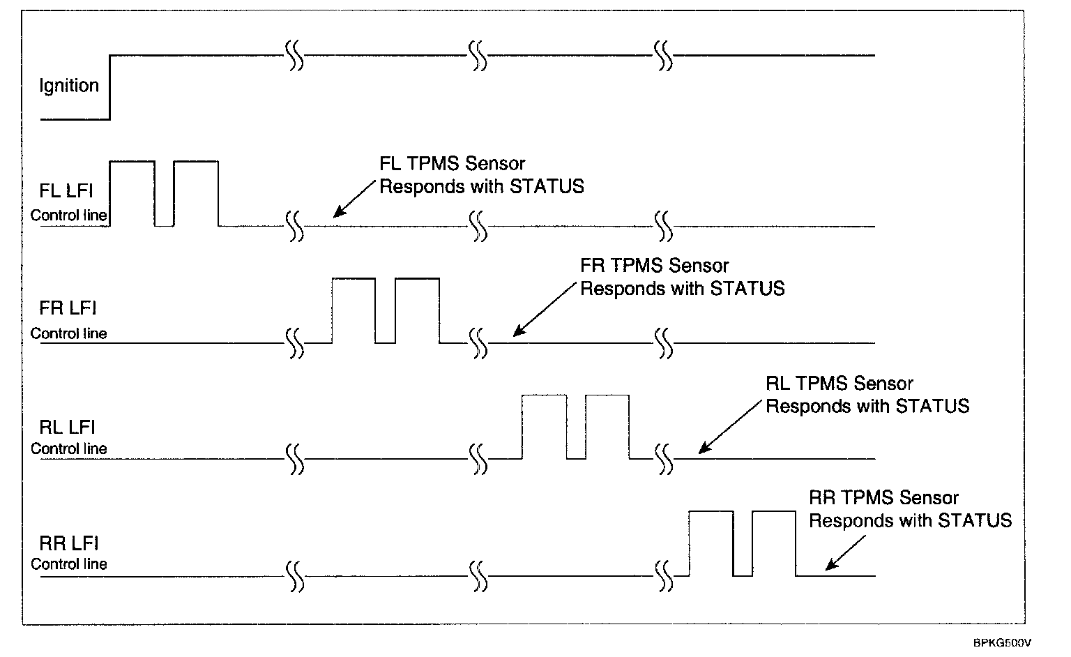 ^ When first turned on, the receiver activates the LFI's to wake up the TPMS sensors and get wheel status.