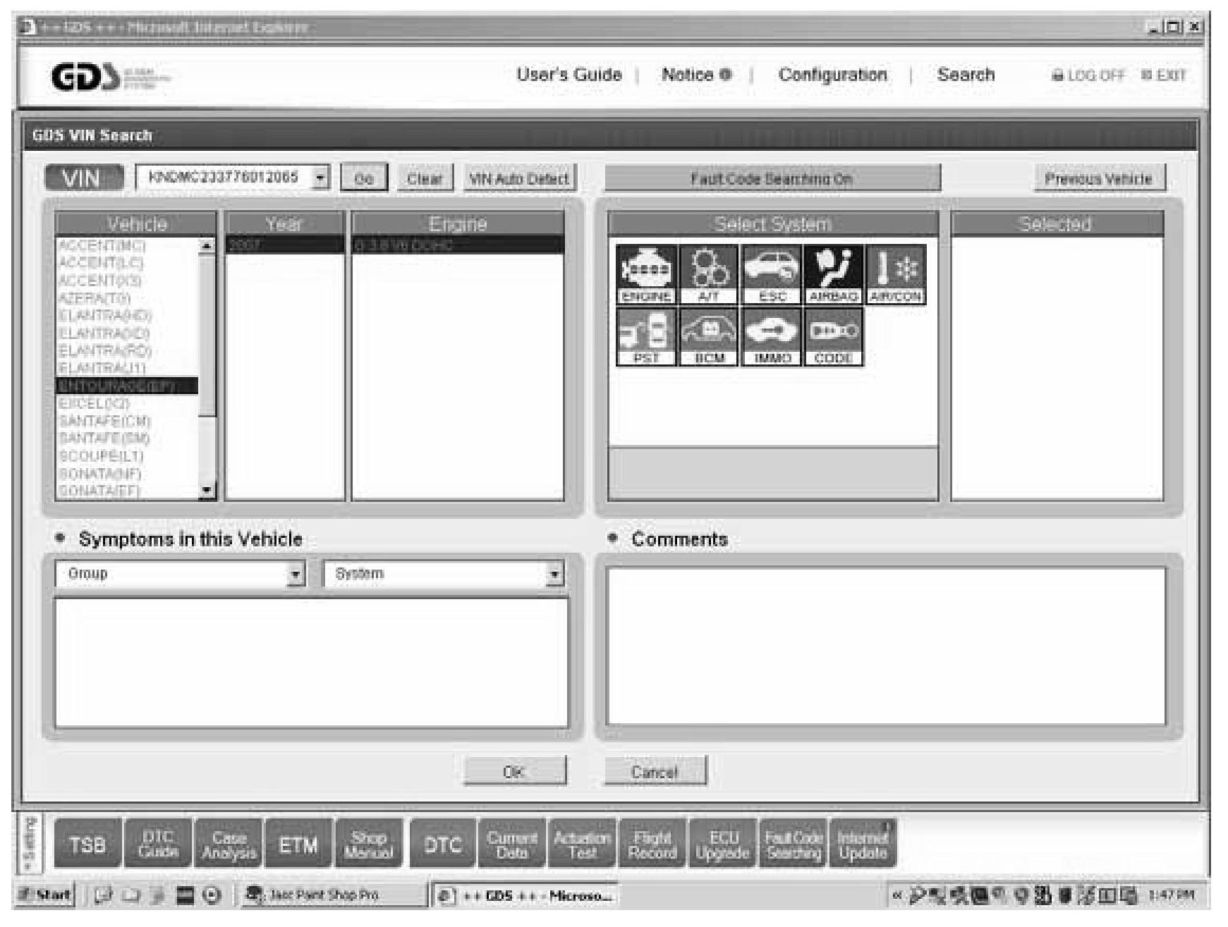 You must have an internet connection to GDS to be able to receive any updated data; the bright blue internet On should illuminate to the left of the VIN button.