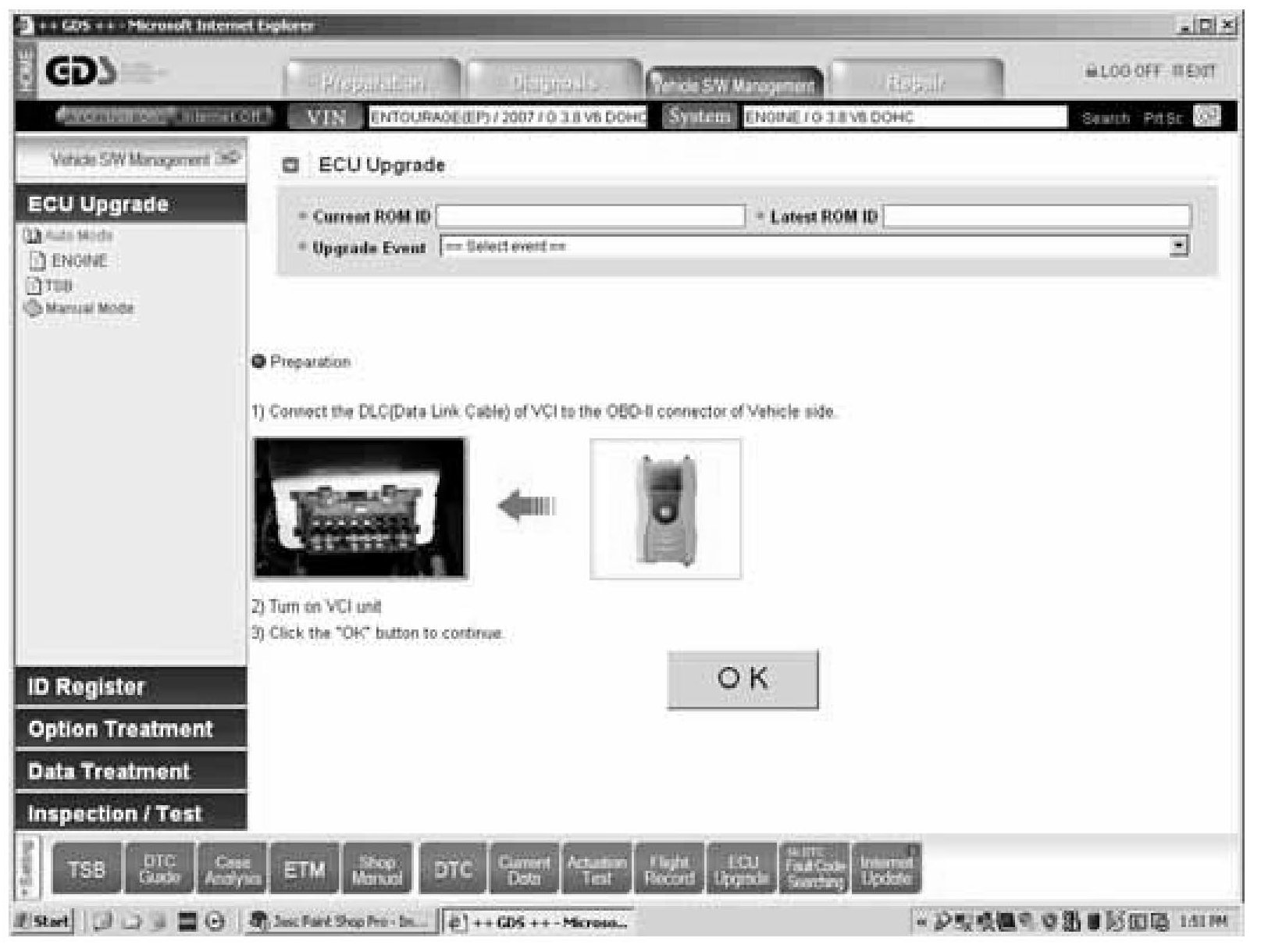 7. In the left column of the following ECU Upgrade screen select Auto Mode followed by ENGINE, then the OK button: