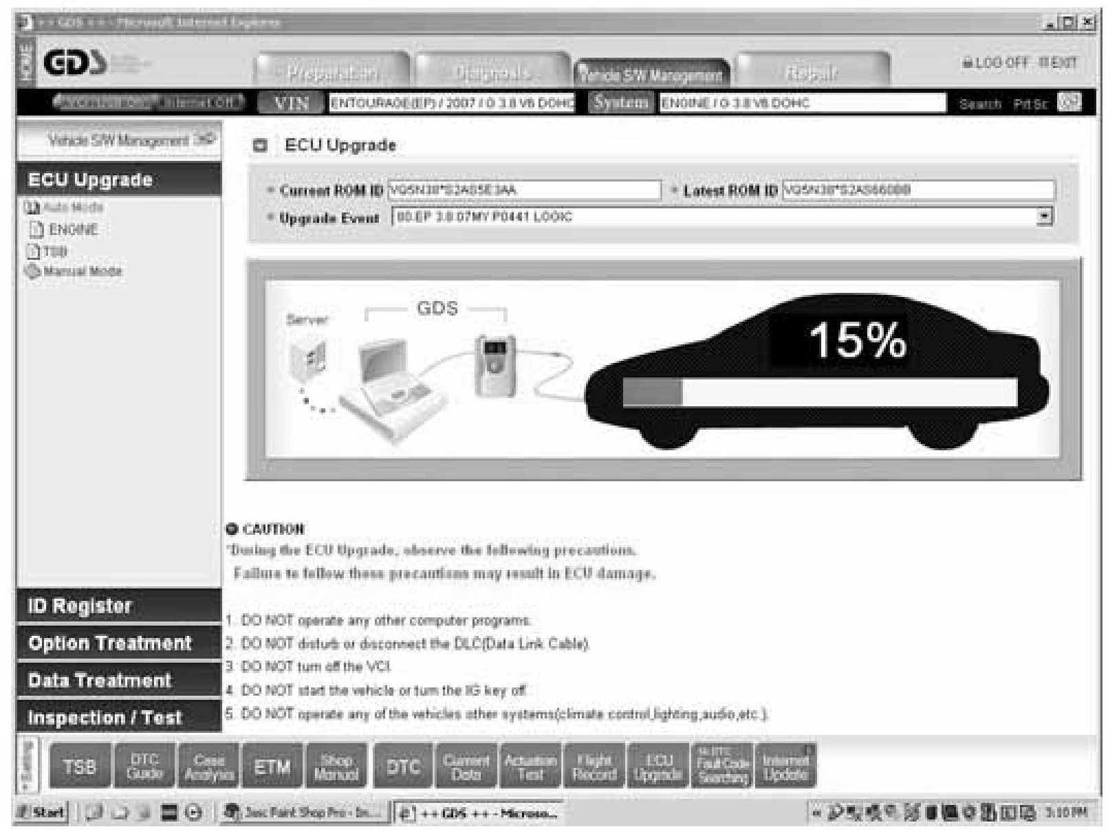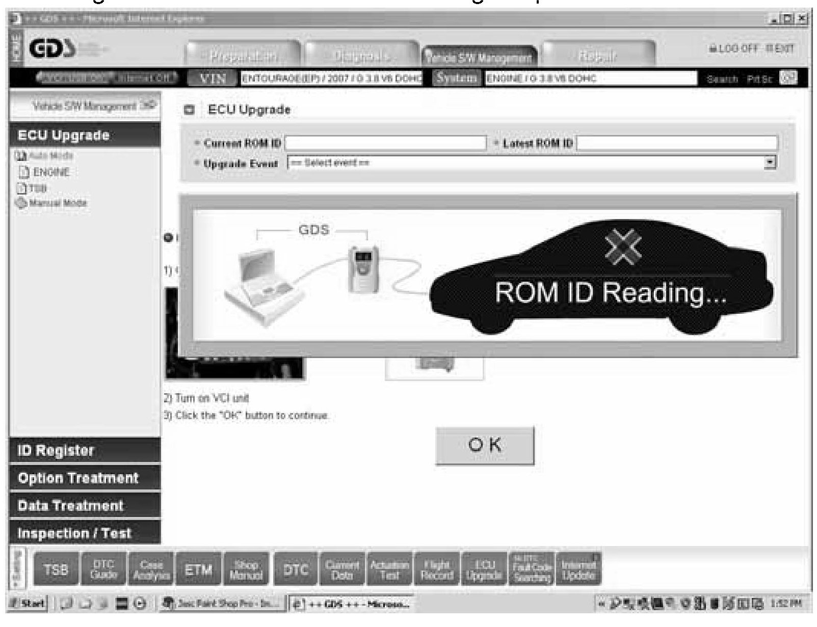 8. The following screen occurs as GDS is reading the present ECU ROM ID: