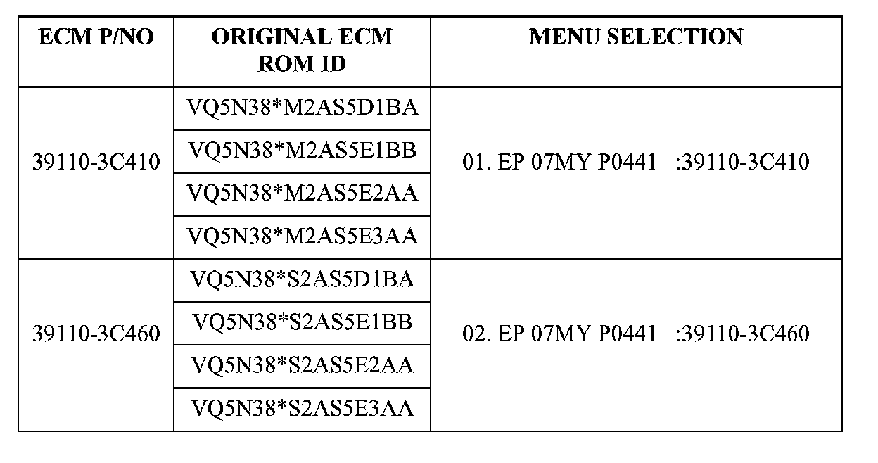 2. Within the ECU Upgrade screen in the left column select Manual Mode followed by ENGINE. Then select Upgrade Event: 80 EP 3.8 07MY P0441 LOGIC followed by the ECM part number from the table below based on the original ROM ID information.