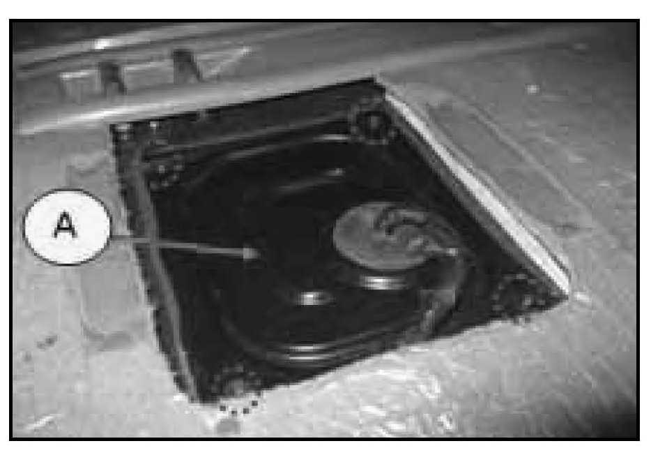 3. Remove the fuel pump service panel (A).