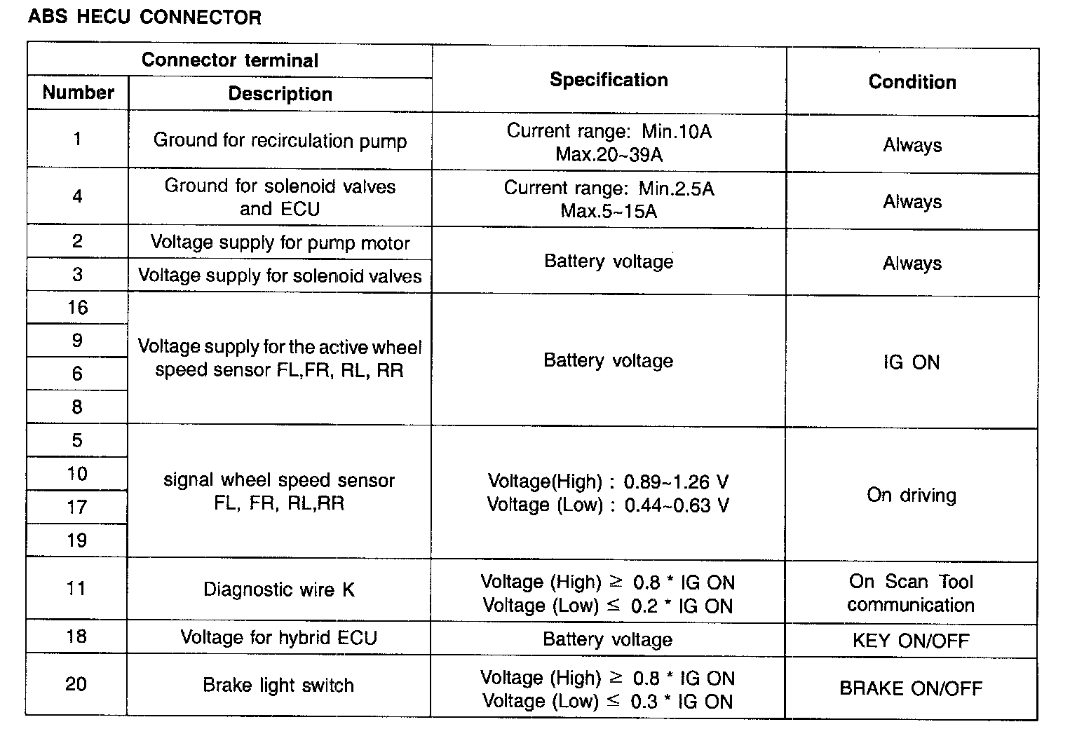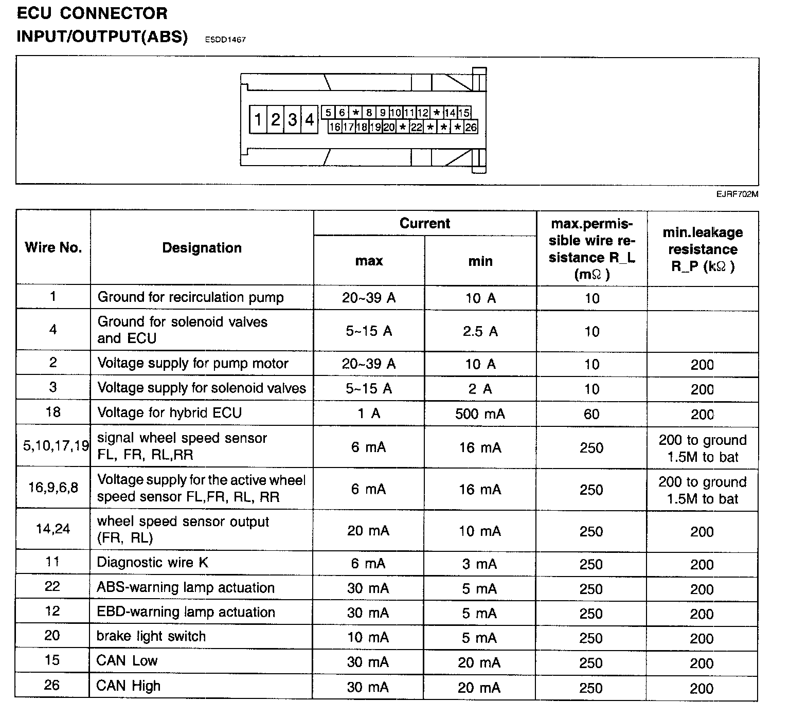 ECU CONNECTOR INPUT/OUTPUT(ABS):