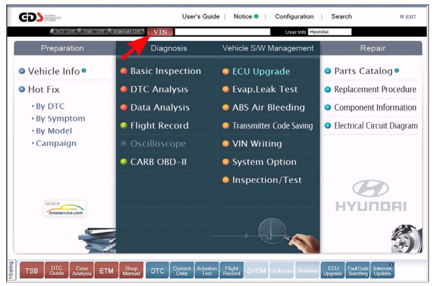 4. Press the VIN button at the top of the screen to launch the GDS VIN search screen.