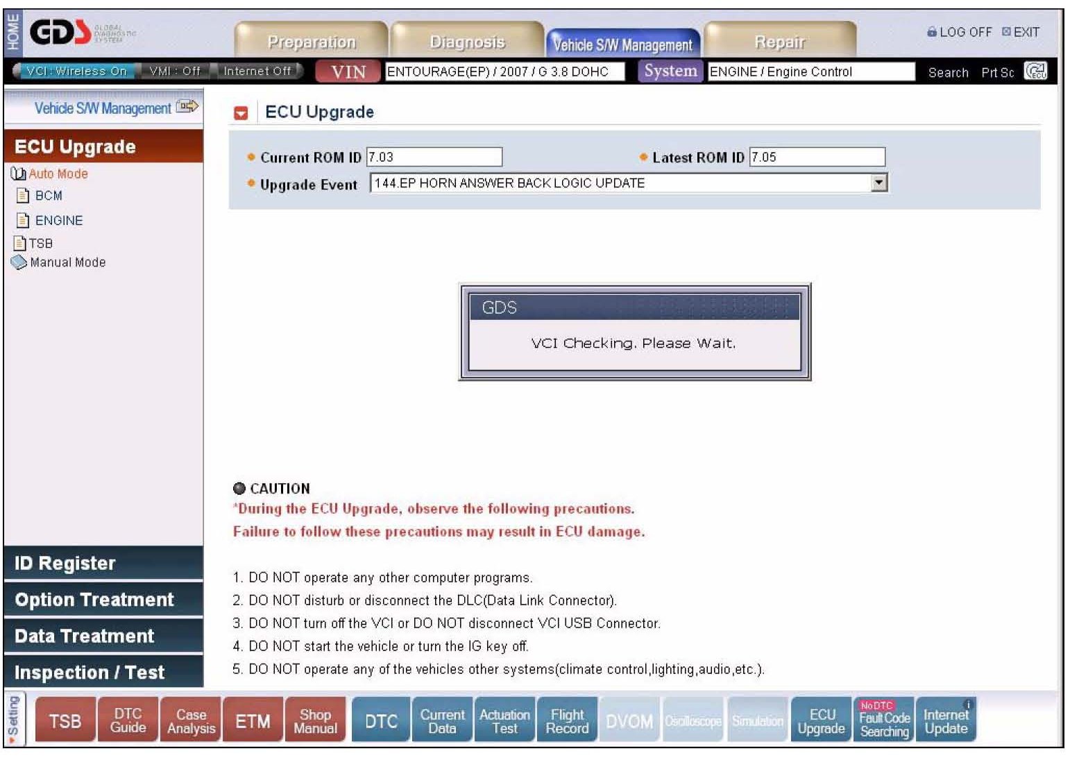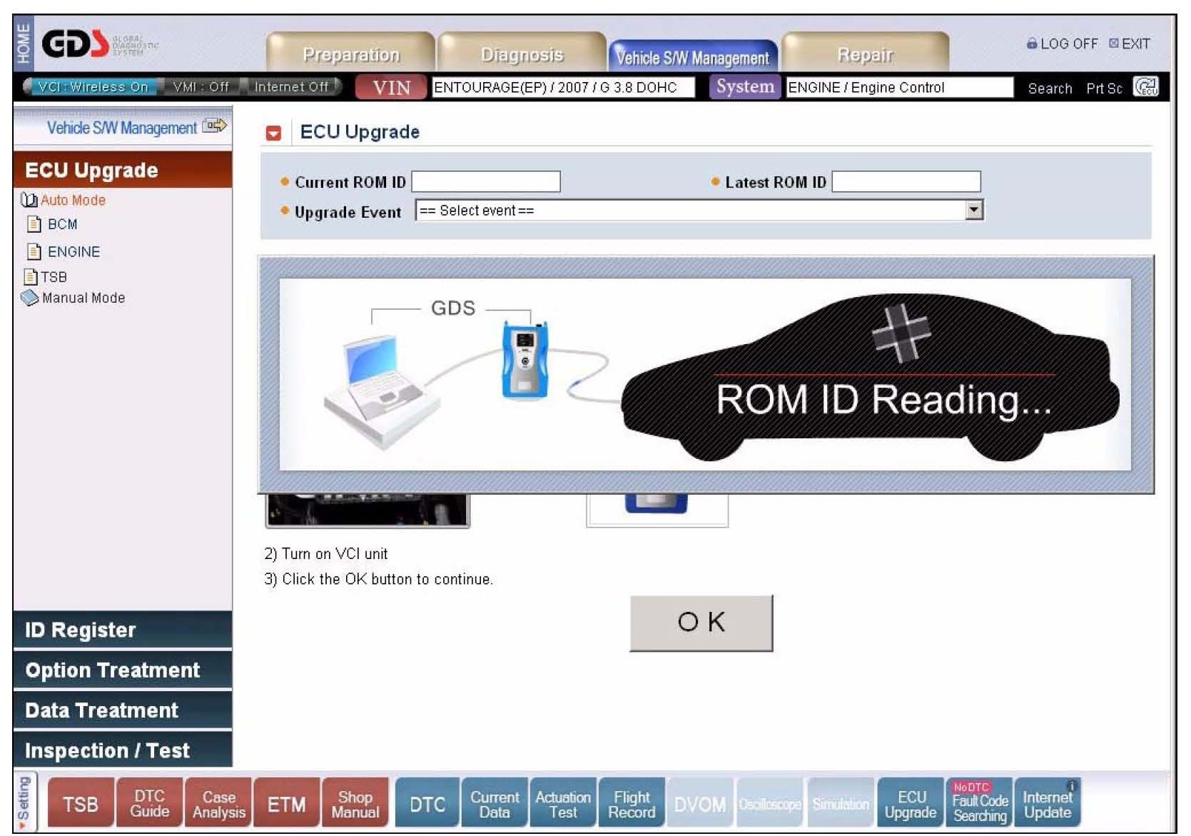 8. The following screen occurs as the GDS is reading the CURRENT ROM ID:
