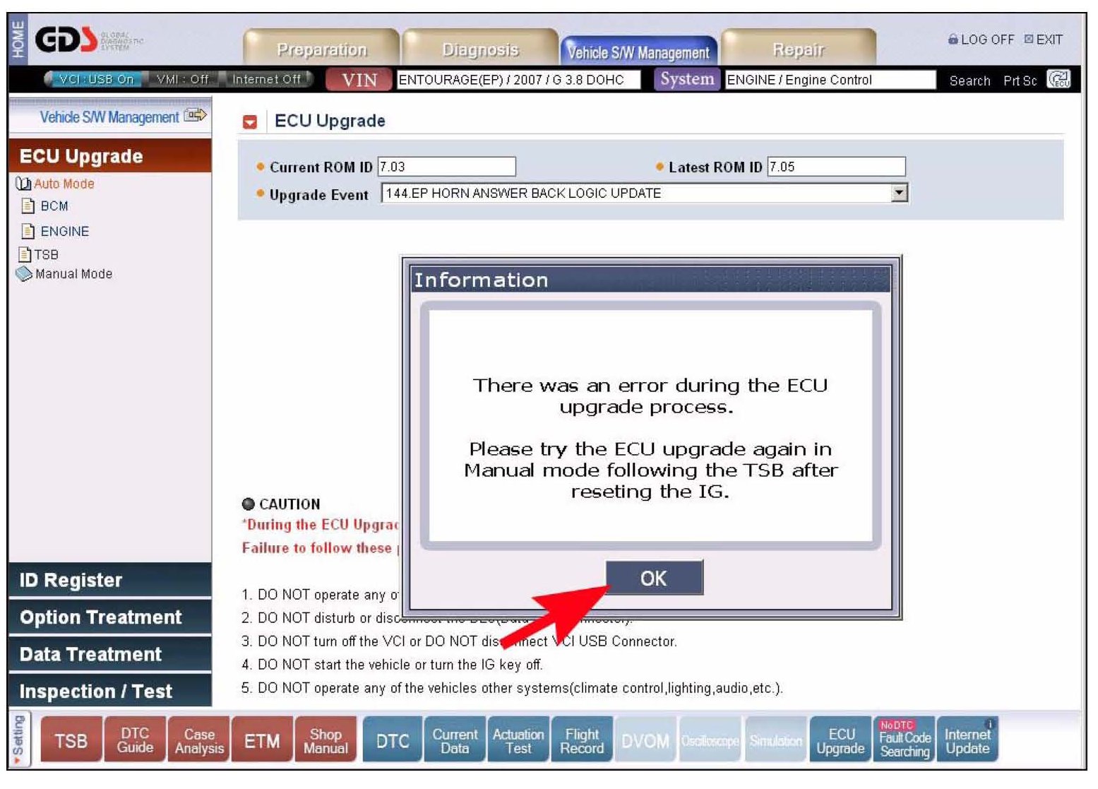 If the reprogramming update is not allowed in the Auto Mode, go to "GDS Manual Mode (Error Mode) Reprogramming Procedure" to reprogram the IPM using the Manual Mode Reprogramming Procedure.