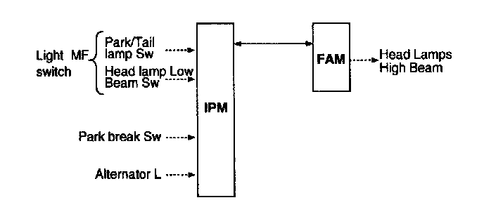 - the Head lamp multifunction switch is in OFF position or 'Park and Tail lamp' (Auto light function deactivated)