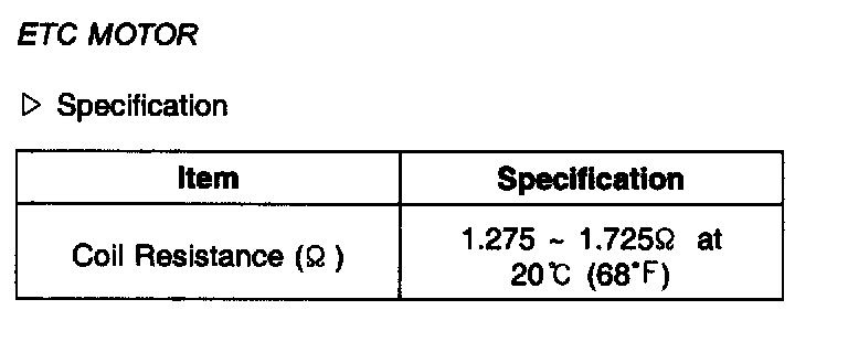 ETC Motor - Specification: