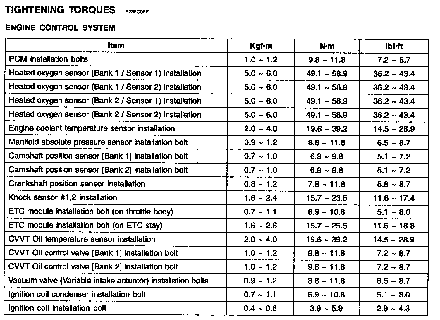 Tightening Torques - Engine Control System:
