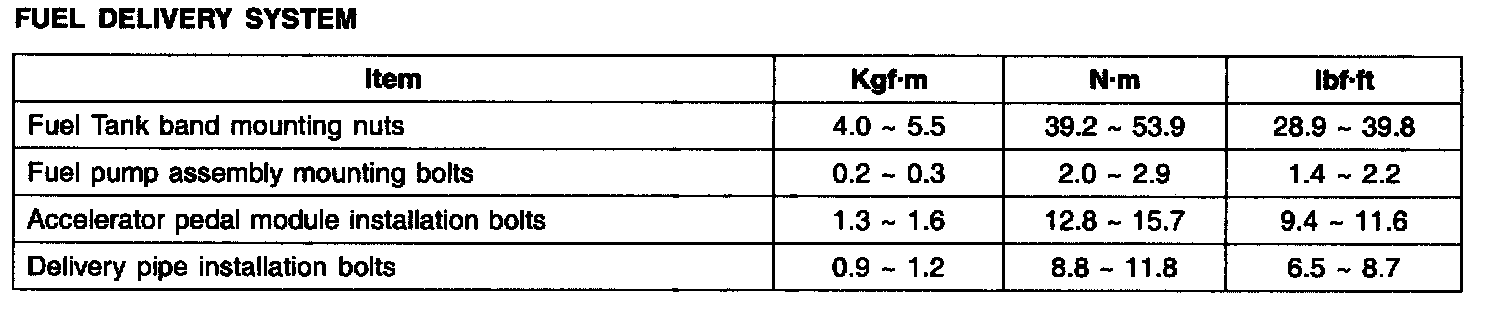 Tightening Torques - Fuel Delivery System: