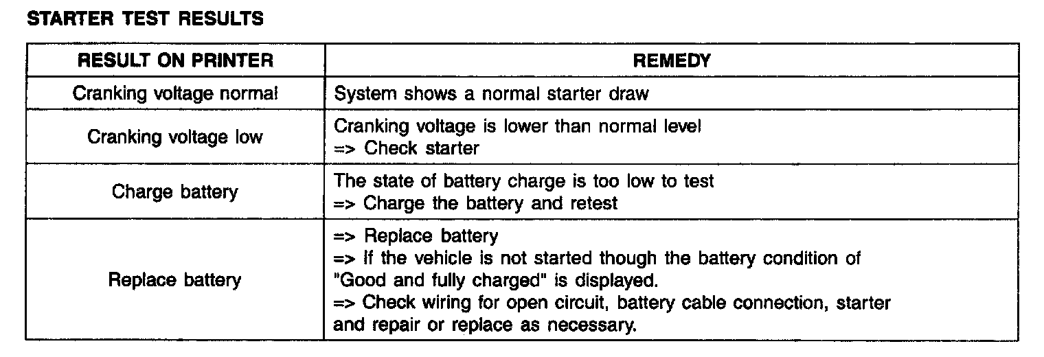 3. Cranking voltage and starter test results will be displayed on the screen.