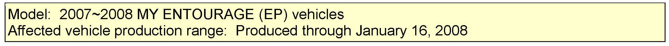 MODEL: 2007-2008 ENTOURAGENUMBER: 11-HA-001
