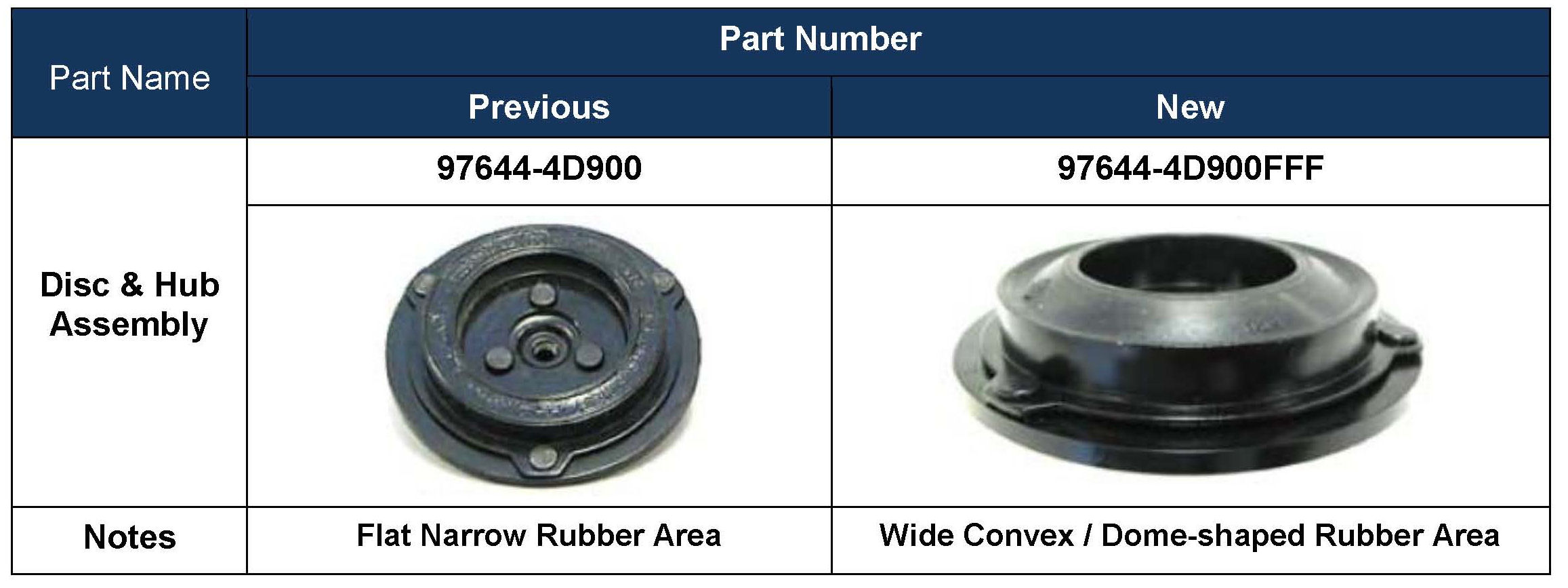Some Entourage vehicles may experience an abnormal tapping noise during A/C compressor use. Installation of the new Disc & Hub Assembly will reduce the transmitted noise