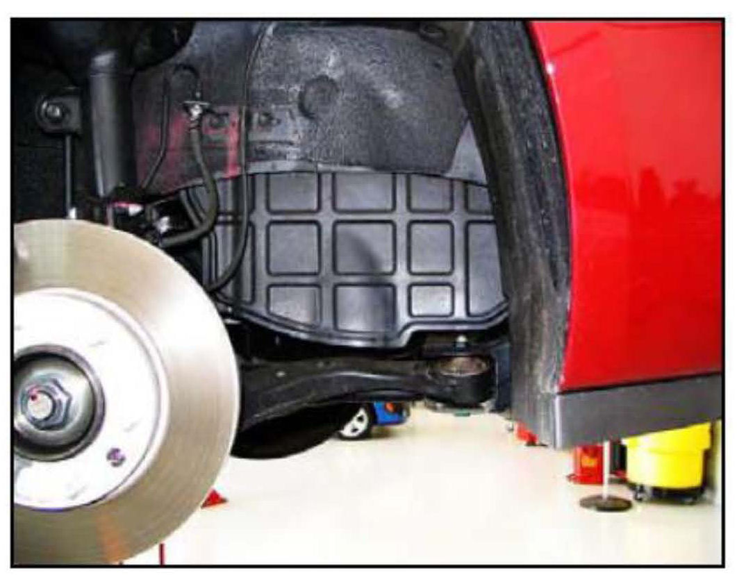 1. Lift up the vehicle on a lift and remove the right front tire and wheel assembly.