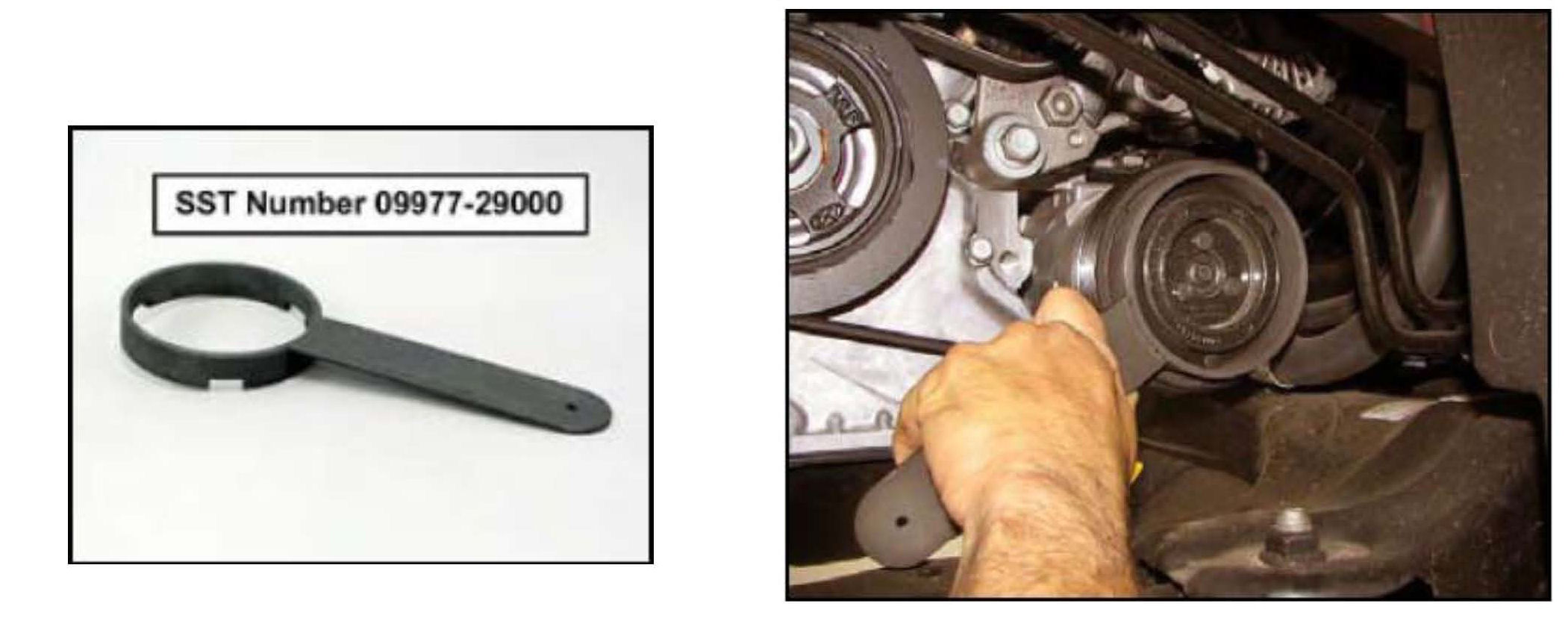 3. Use SST number 09977-29000 to hold the disc + hub assembly.