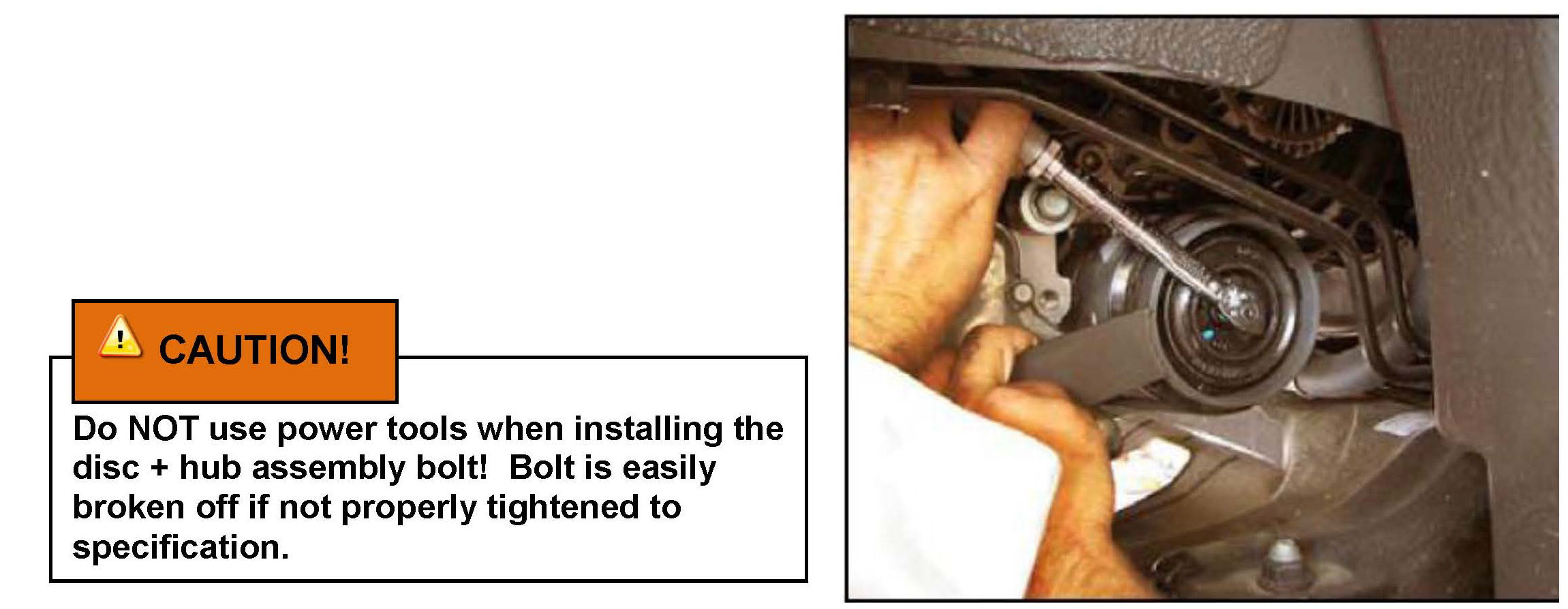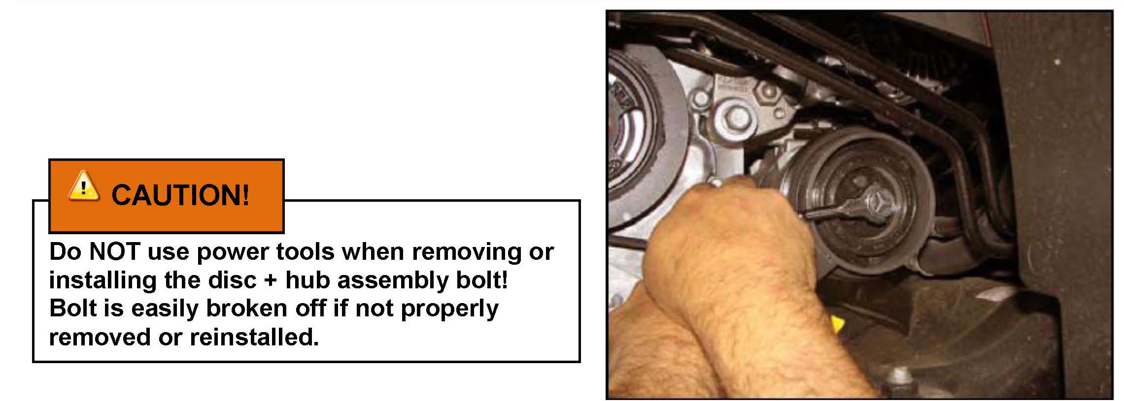 ^ Check that the newly installed redesigned disc + hub assembly does not rub or drag on the compressor pulley.