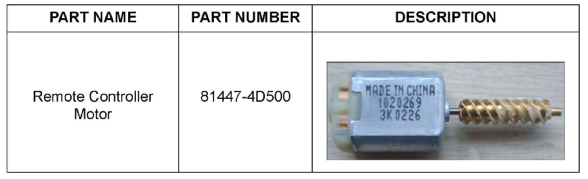 This bulletin provides the service procedure to replace the Remote Controller Motor to repair this condition.