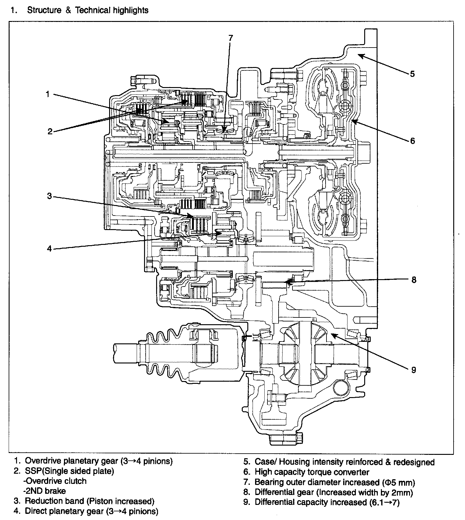 - SSP (Single Sided Plate) applied only on overdrive clutch and 2nd brake