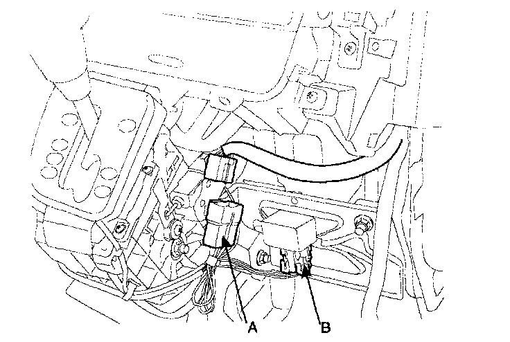 5. Connect the solenoid connector (A) and install the indicator panel (B).