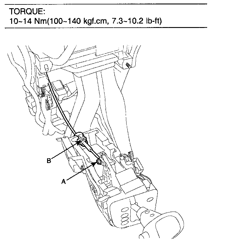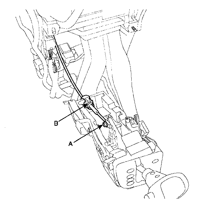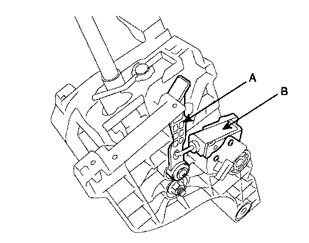 5. Remove the shift cable mounting nut (A) and cap (B).